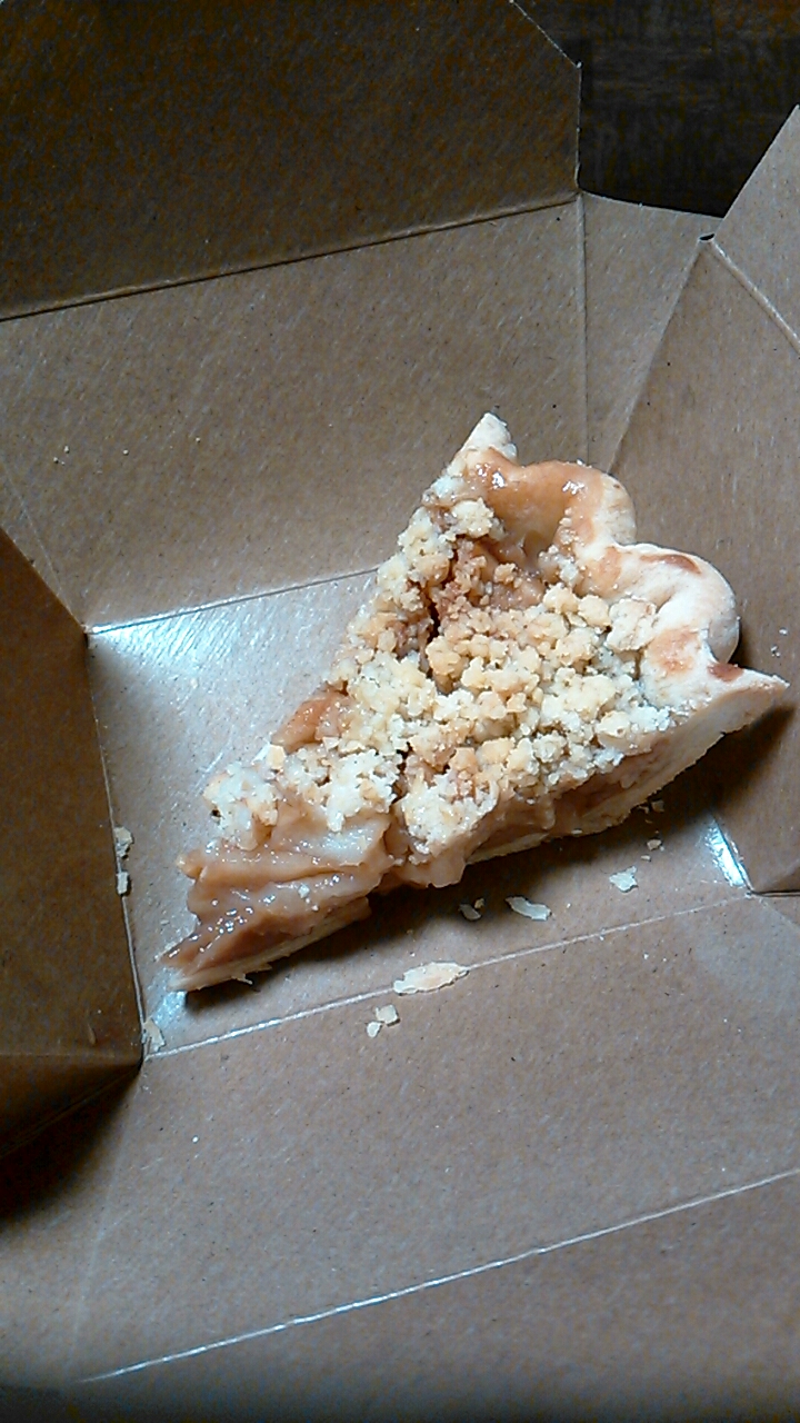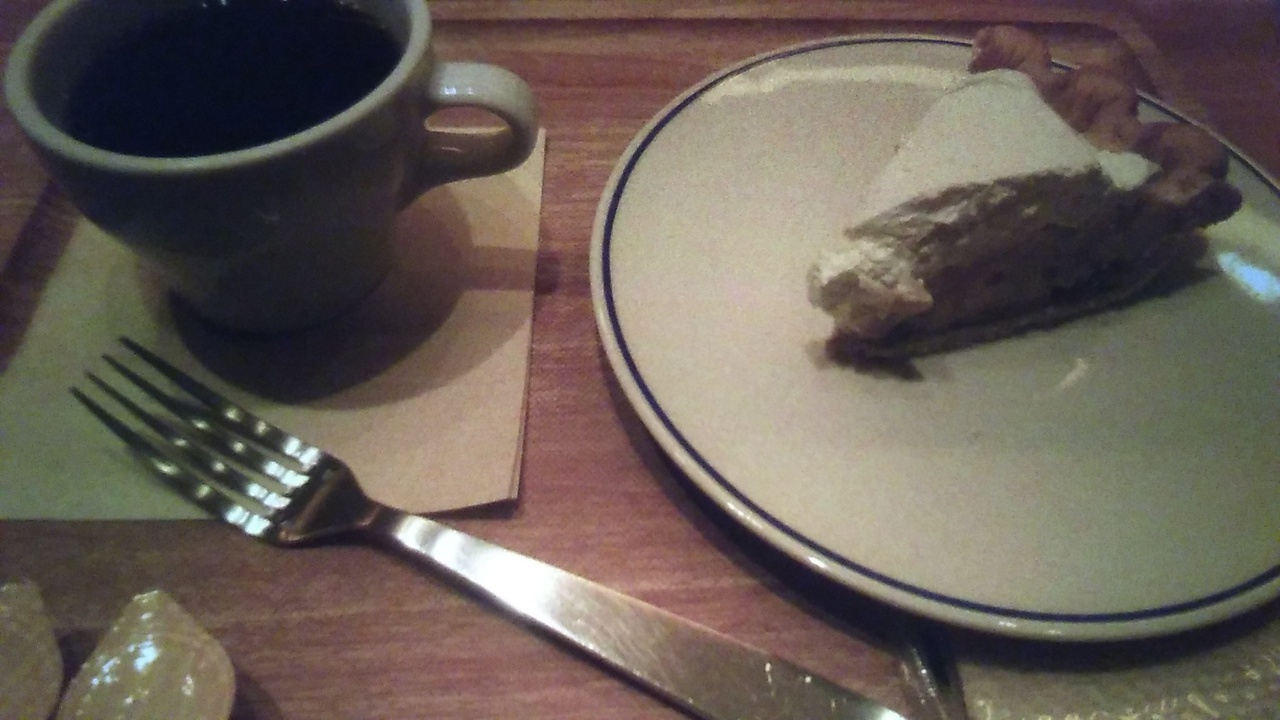 ただ、やはりアメリカンなパイですので大きくて甘さも強く、苦いコーヒーと一緒に食べてもおばさんの胃には半分でギブアップでした。朝食として食べて、お昼もまだお腹がすかなった位ずっしりきます。