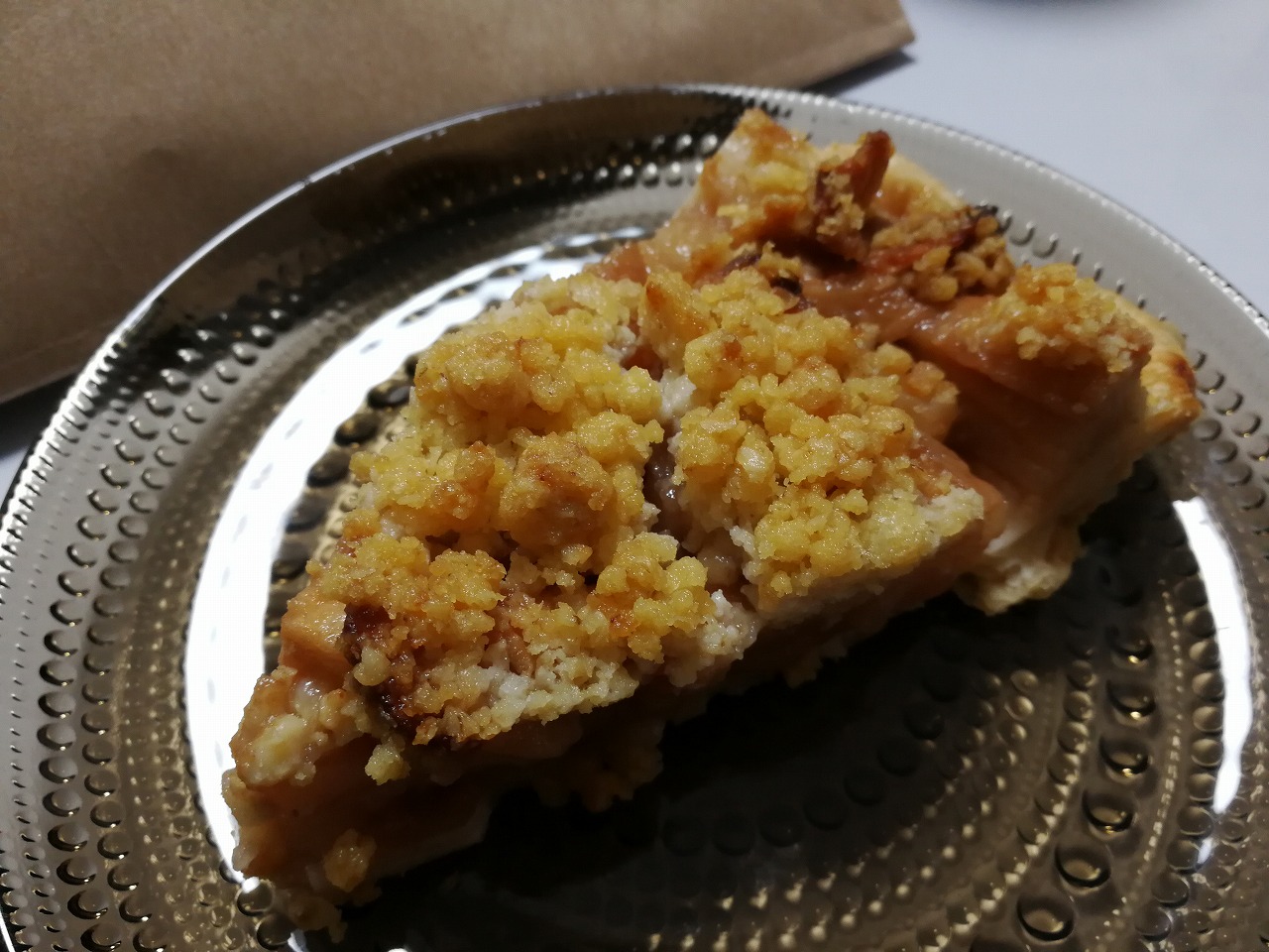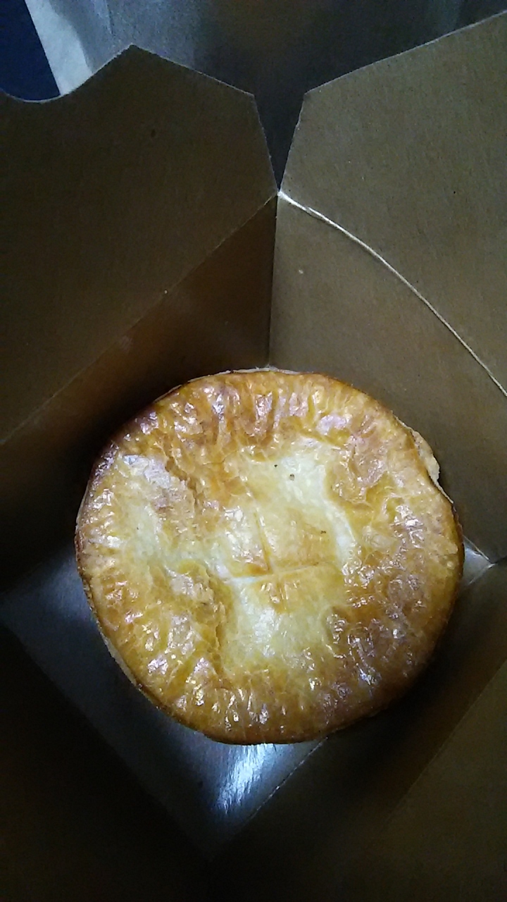 パイ生地はハリハリという食感で特に分厚いふちの部分の食べ応えがすごいです。パイ生地自体に特徴的な味は付いていません。