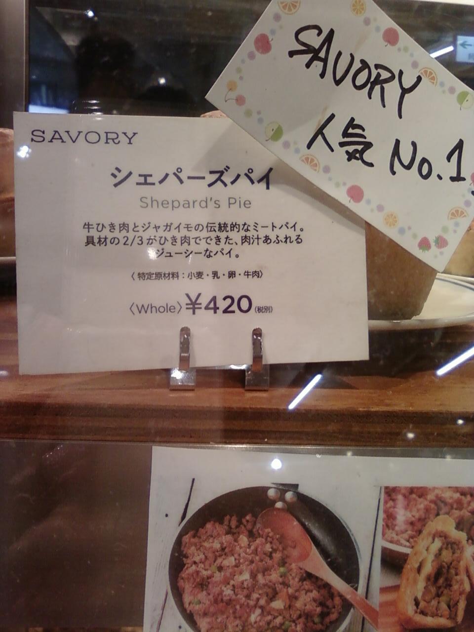 スイーツ系だけでなく、食事系パイも豊富です。ここの商品を食べるなら栄養やカロリーのことを考えないほうがおいしくいただけます。
