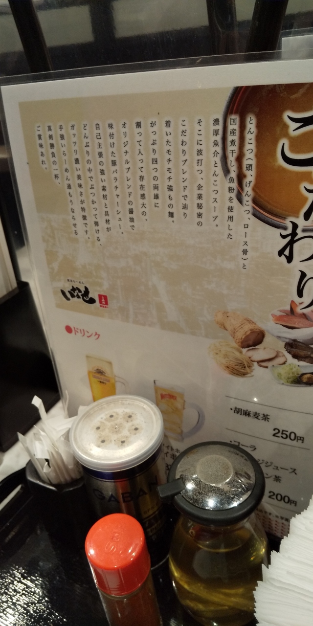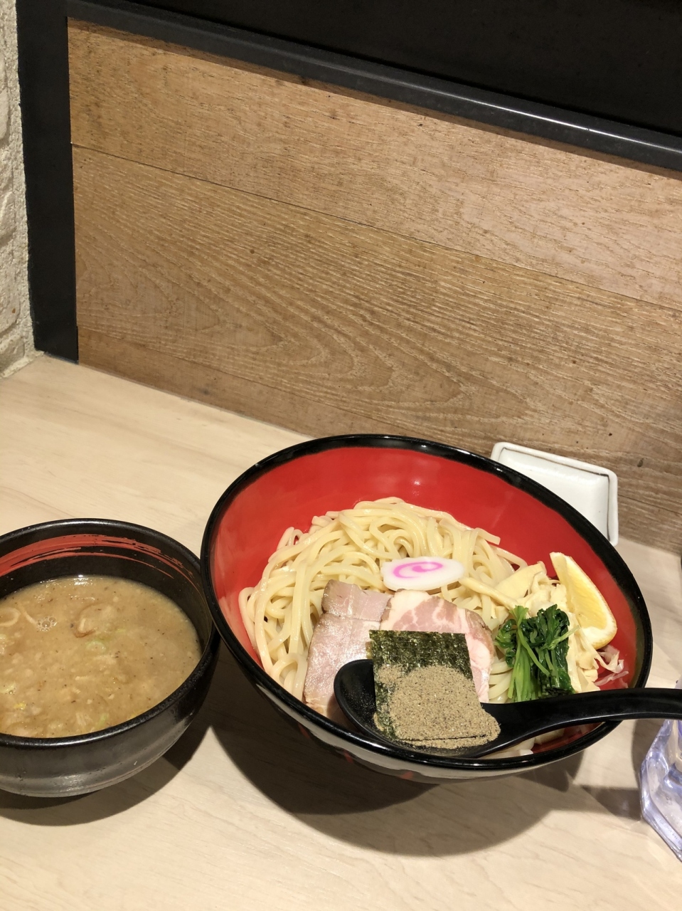 名古屋駅の新幹線乗り場、JR近くの驛麺通りのラーメン店の一つです。お店が変わってから、入ったお店みたいです。驛麺通り自体が... 続きを読む通路が狭く、うまく作ったなぁという店内の作り。カウンターがほとんどです。ラーメンとつけ麺があり、やっとつけ麺にハマり、つけ麺を食べました。メンマが甘くなく、先の方でシャキシャキで、麺と一緒に食べるとアクセントになります。野菜も味に飽きた頃に少し味が変わって嬉しいです。魚粉があまり好きではないので、レンゲに入っていて、自分で調整できるのもよかったです。