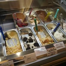 チケットを店員さんに渡して、好みのフレーバーを伝えます。フレーバーは10種類あって、トマトやヤギミルクなど期間限定で変り種もありました。季節によって種類が変わるようです。