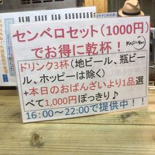 立ち飲み酒場だが椅子はある お手軽1000円セット