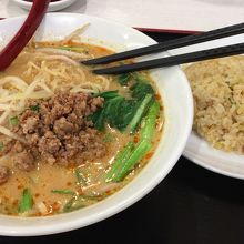イオンタウンに買い物に行った際、昼食で利用しました。フードコート内の一店です。万福餡という麺の店と餃子の店が一緒になってい... 続きを読むます。本当は餃子と麺が食べたかったのですが店の立て看板のセットメニューにその組み合わせがなかったので麺+半炒飯セット730円(税込)にしました。麺も半炒飯も各々4種類ありますがタンタン麺と高菜半炒飯にしました。会計を済ませると専用端末を渡されます。テーブルで待っているとその端末が出来上がりを知らせてくれます。タンタン麺はスープが程良い辛さで細いちぢれ麺も美味しかったです。スープは高菜半炒飯ともよく合いました。適量でお薦めです。注文時に羽根つき餃子5個(300円)をプラスしていたら多過ぎたかもしれません。次回は麺単品と餃子にしてみようと思います。
