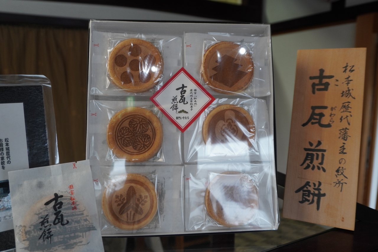 松本城の歴代城主の家紋をデザインした古瓦煎餅