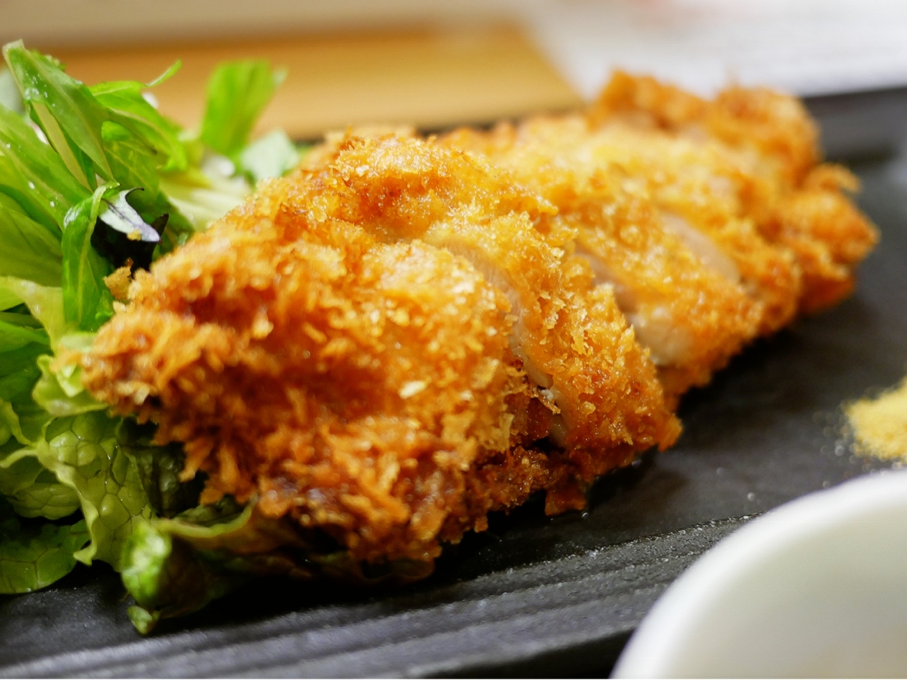 揚げ物の勢いで作られたカツと違い、鶏肉の旨味が凝縮されていて、上品且つ大変美味しいチキンカツでした。