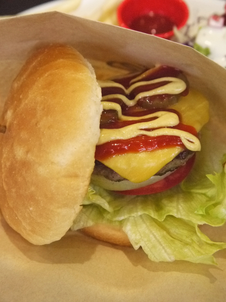 パティは大きく、分厚く、外側はカリッと、中は肉汁たっぷりに焼いてあった。