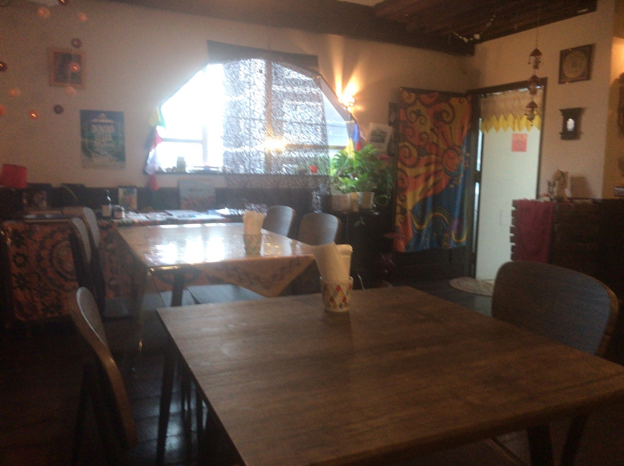 国際通り近くにあるヴィーガン料理のレストランです。メニューは、カレーやタコライス、唐揚げ丼など。店内には、ガネーシャの置物... 続きを読むや、チベットのカラフルな旗が飾られ、インディアン音楽のBGMで、エスニックな雰囲気。でも、こてこてのデコレーションではなく、すっきりした内装。ビルの2階にあり、風が通り抜ける、気持ちの良い空間でした。