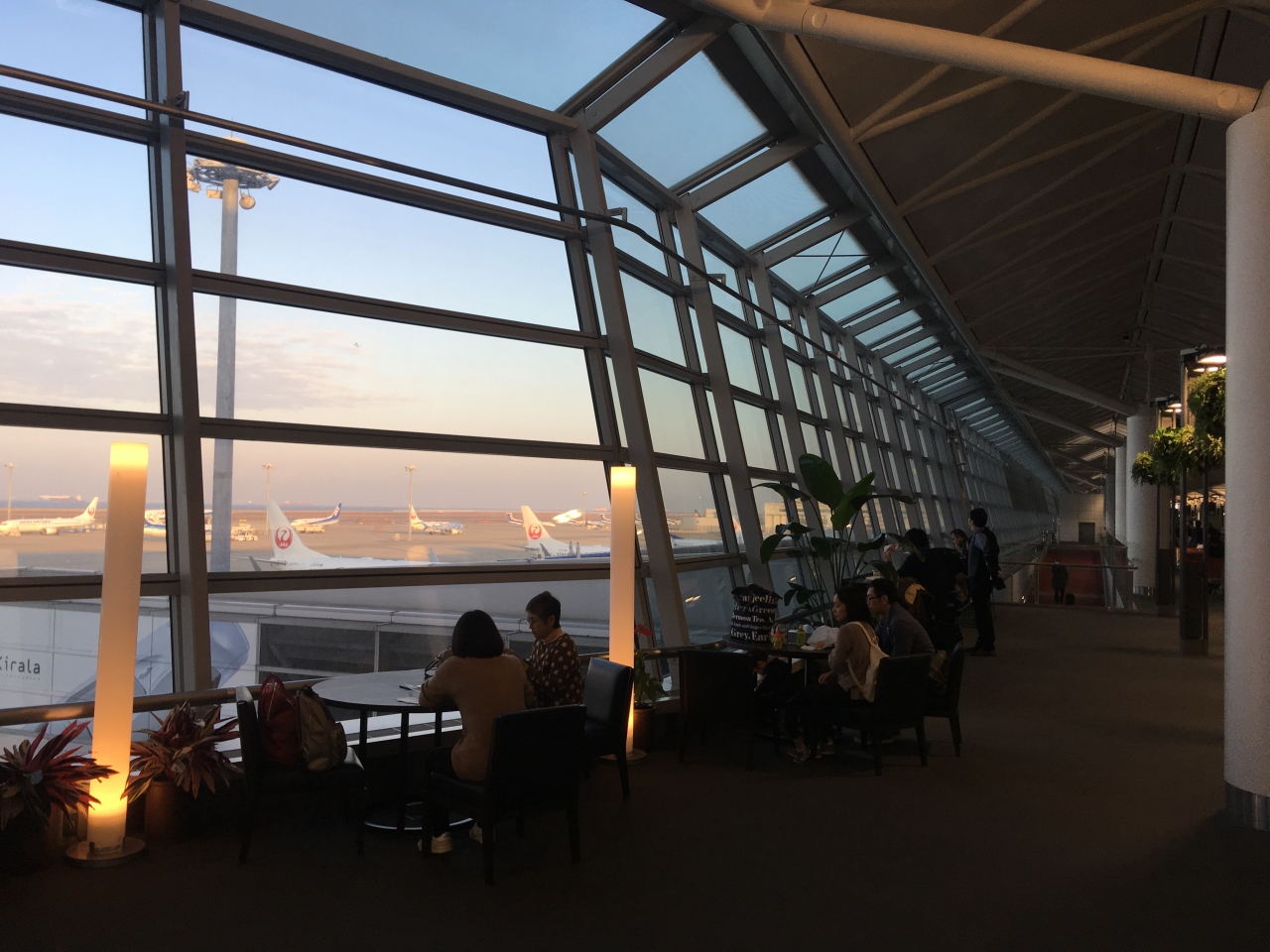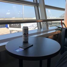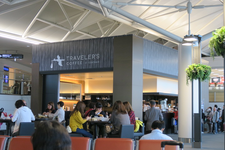 ラウンジが混み合っているときは、トラベラーズコーヒーで飛行機見ながらゆったりと。