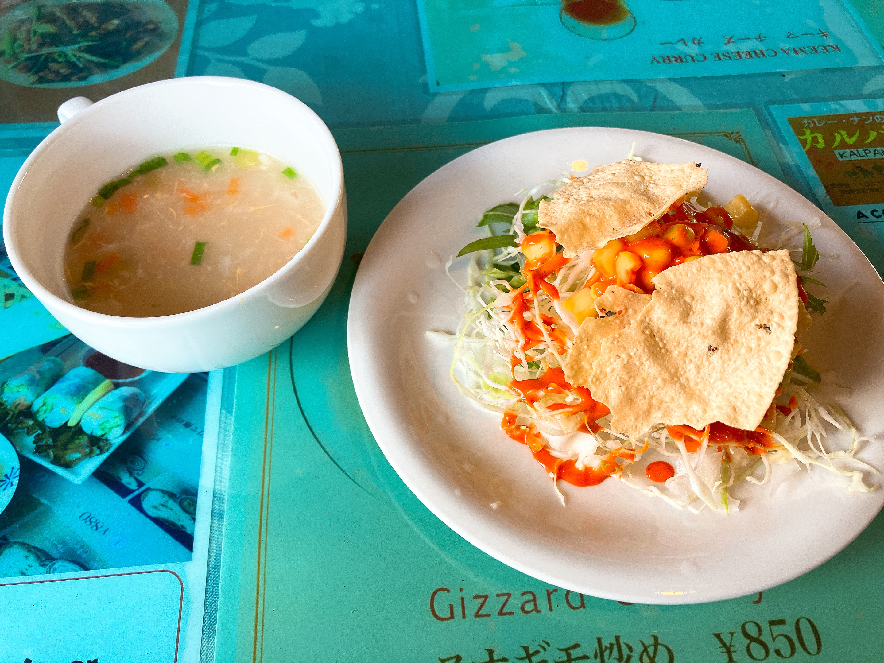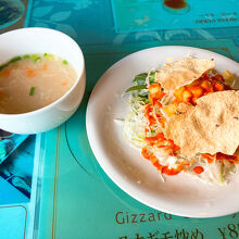 頼んだのはいつもの春巻きランチ。サラダスープ生春巻きにナンとカレーとドリンクまで付いてナンはお代わり自由、それで950円は大概お値打ちヽ(´▽`)/