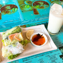 クオリティも高め。生春巻きは新鮮シャキシャキ野菜で美味しくてヘルシー♪ほんのり甘めのナンがカレーによく合うんよね