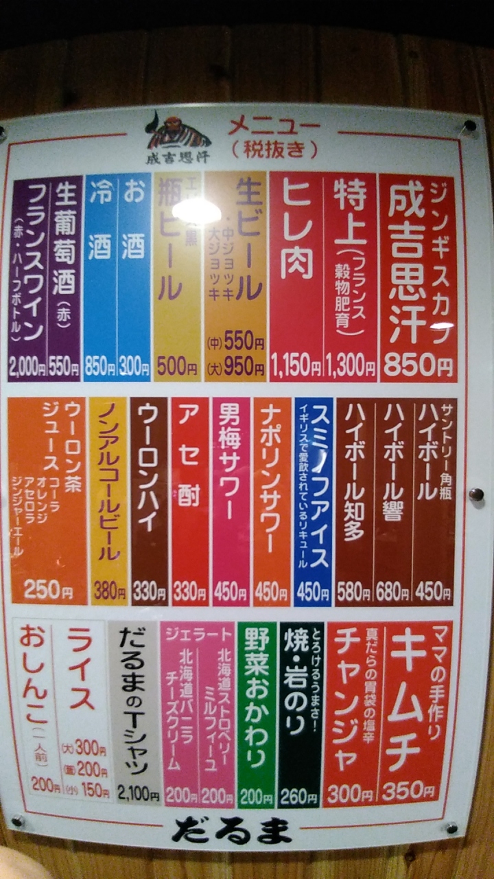 - 成吉思汗だるま 5.5店