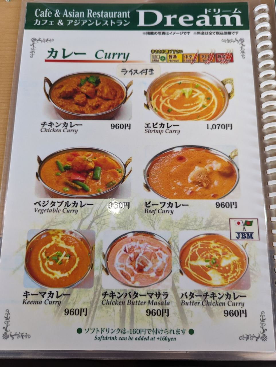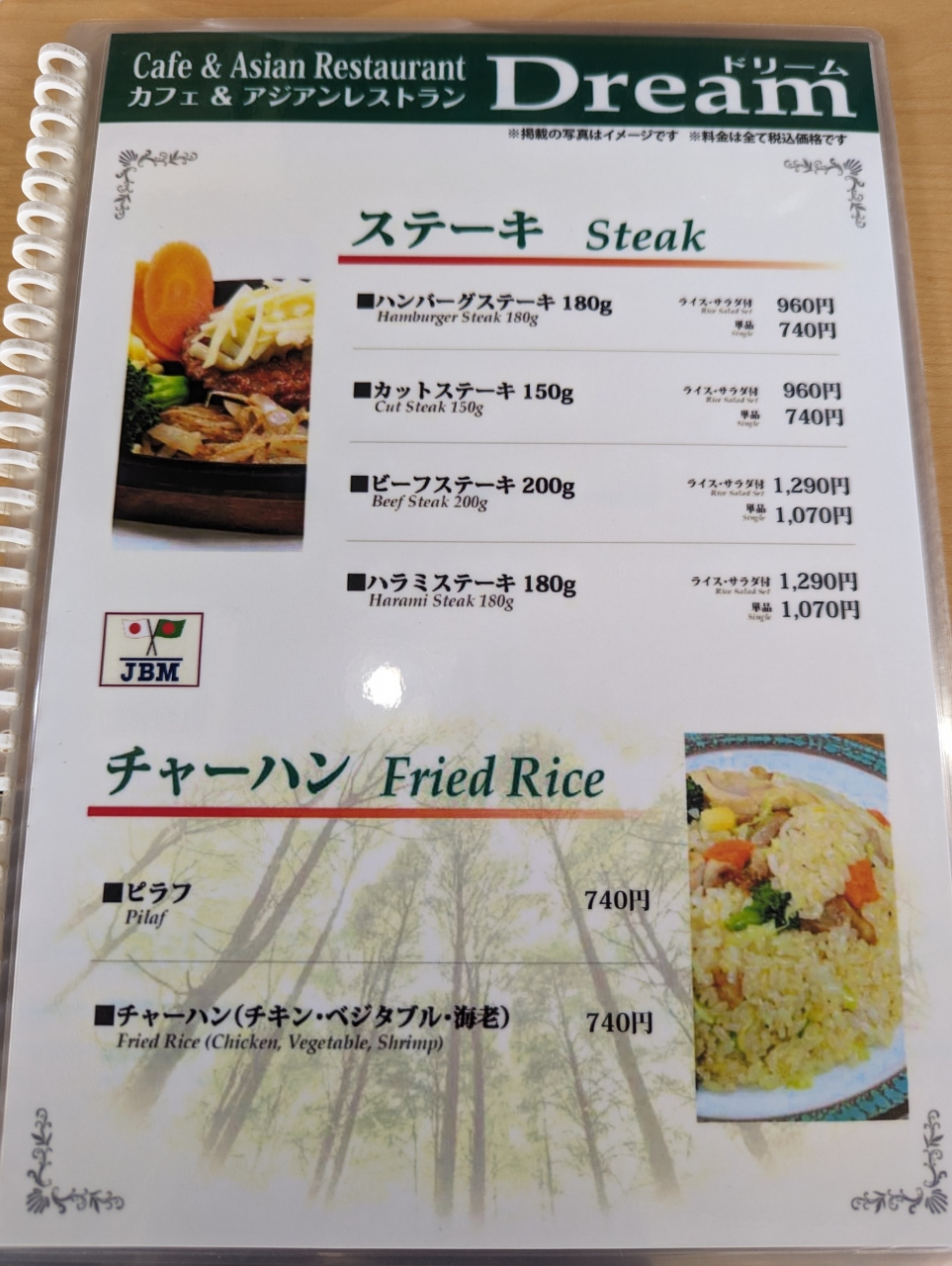Although not on the outside of the restaurant, the word "JBM" and the Japanese and Bangladeshi flags on the menu and inside the restaurant make you wonder if this is a restaurant where you can enjoy Bangladeshi cuisine. You may think that it's a restaurant where you can enjoy Bangladeshi cuisine, but that is not the case at all. Only some of the dishes are curries, which can be found in Indian curry restaurants, and most of the menu is a typical Western restaurant with hamburgers, pasta, steaks, and so on.