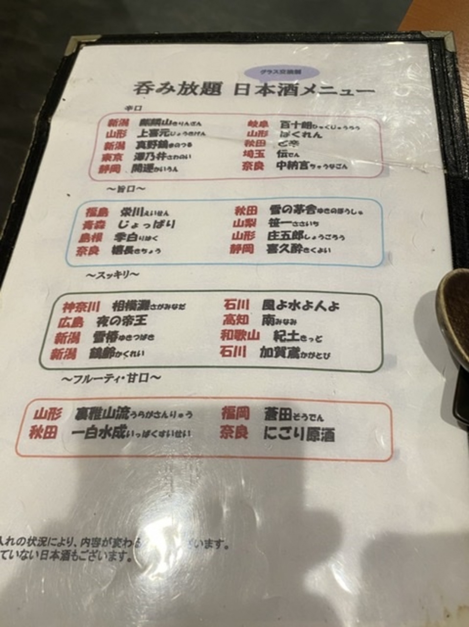 飲み放題に伯楽星、醸し人九平次、日高見が!