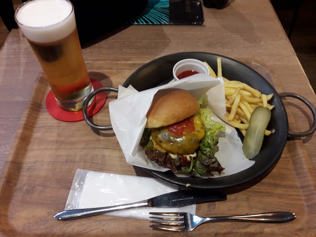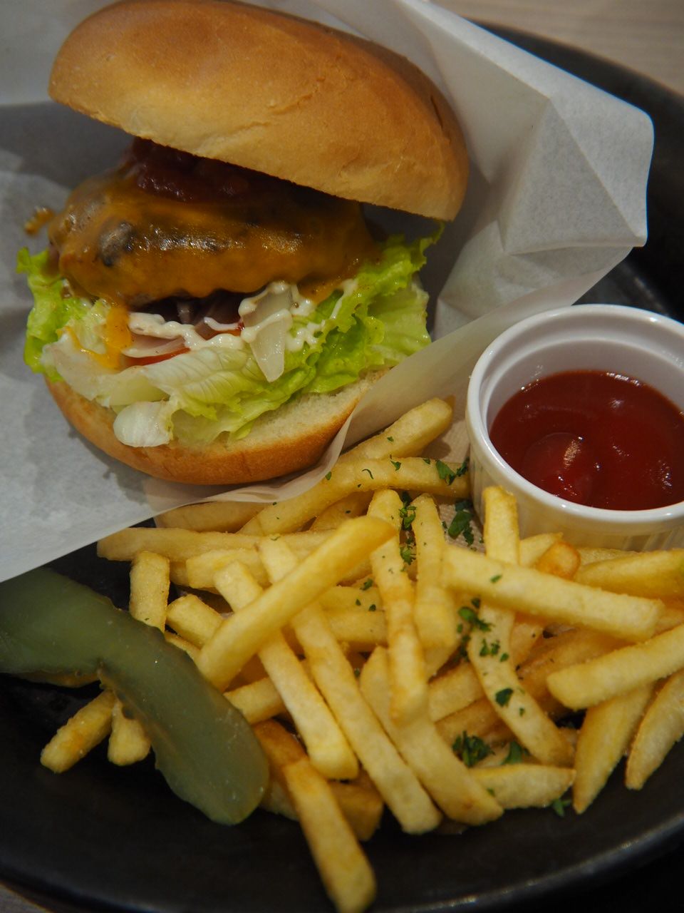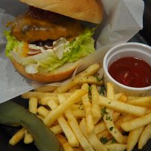ハンバーガーは、バンズの間にビーフパティ、レタス、オニオン、トマトを挟んでいる。ラッピングペーパーに入れられた状態で提供されるので、手をあまり汚さずいただける様になっている。 閉じる投稿日:2019/02/24