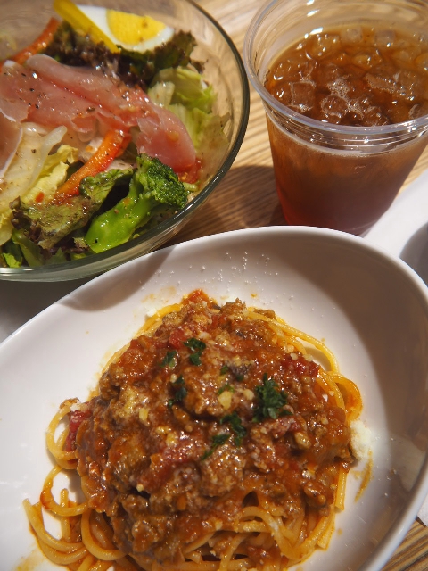 サラダと、ハーフサイズのパスタと、ドリンクから成る。