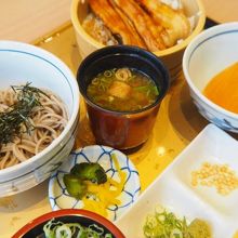 おひつに白飯を敷き詰め、煮穴子を乗せ、タレを掛けたものがメインとなり、他に味噌汁と漬物が付く。