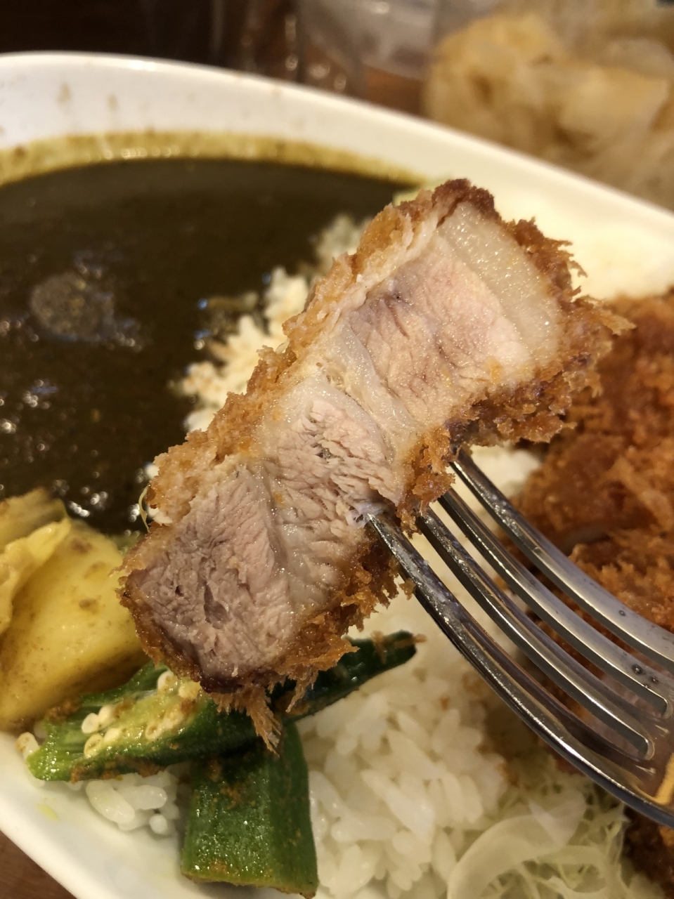 豚カツをカレーにディップしたり、ご飯と一緒に食べたり、塩だけを付けて食べたり…厚切りリブロースの豚カツはどのように食べても美味しかった