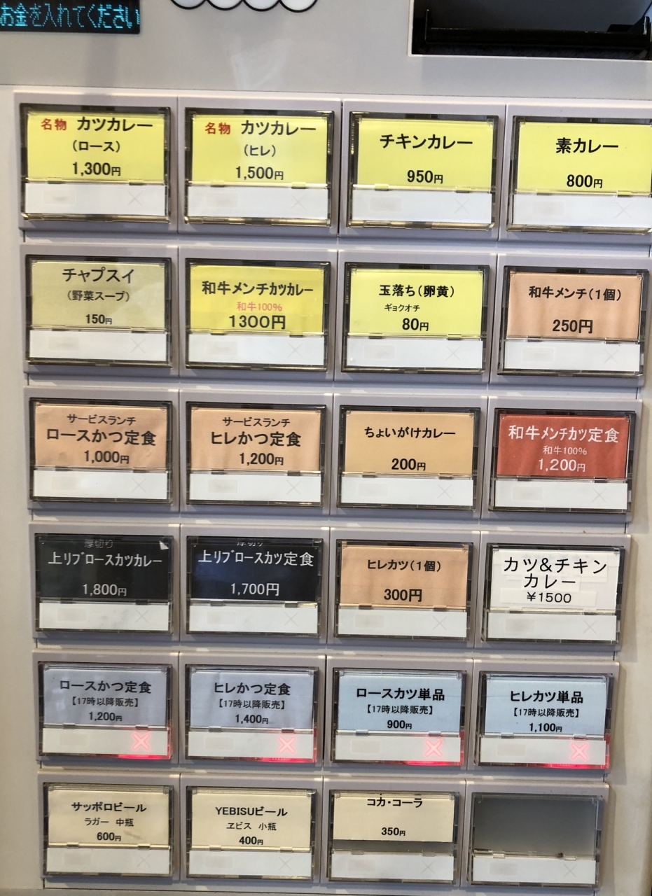 「厚切り 上リブロースカツカレー」¥1,800-の食券を購入した