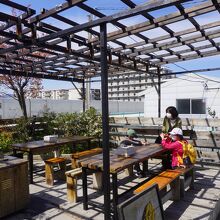 店の横にテラス席があり、ドリンクやソフトクリームをいただける様になっている。
