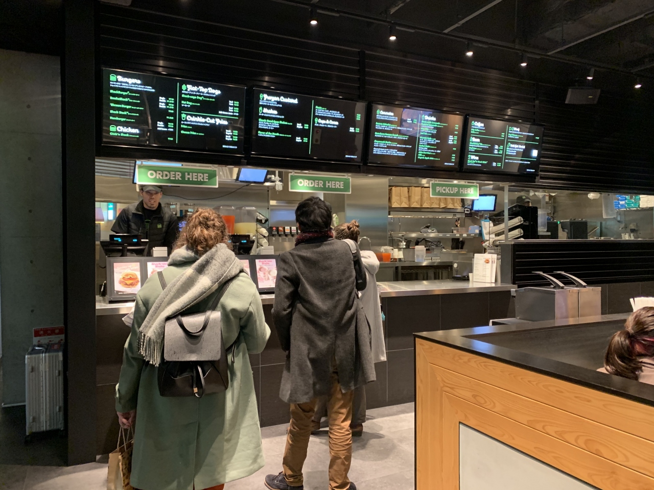 食事スペースが1Fにも2Fにもあります。2Fの窓側で食べれば、本当は梅田の景色を見れますが、今回は1Fで食べました。今回は大会に向けて減量中のため、注文をシャックバーガー1個にとどめました。減量中じゃなかれば、フライも美味しそうなので頼むかもしれません。たったバーガー1個なのに、値段は結構高いですね。