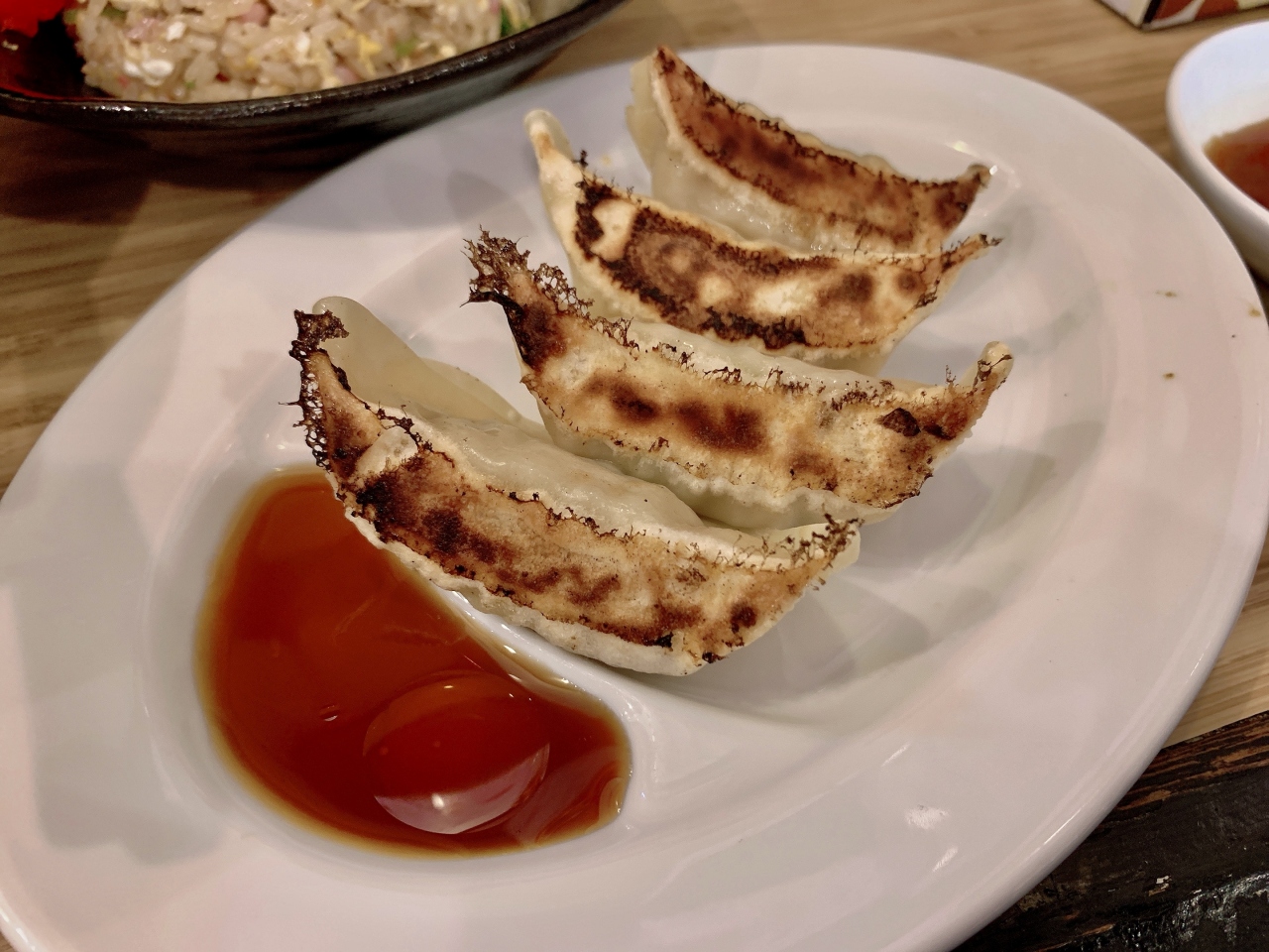 「炒飯」は美味しい!美味しい食べ方として「餃子醤油+ニンニク」を混ぜてかけると更に美味しいくなるね~オススメ!「餃子」は大判な皮に餡は薄めな味付けでまずまずな仕上がりでした。