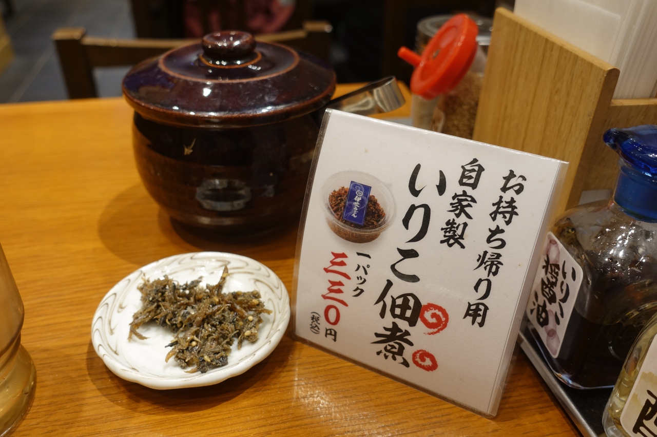 うどんが来るまでに自由につまめるいりこの佃煮がこれまた美味しくてこれは買って帰りました。