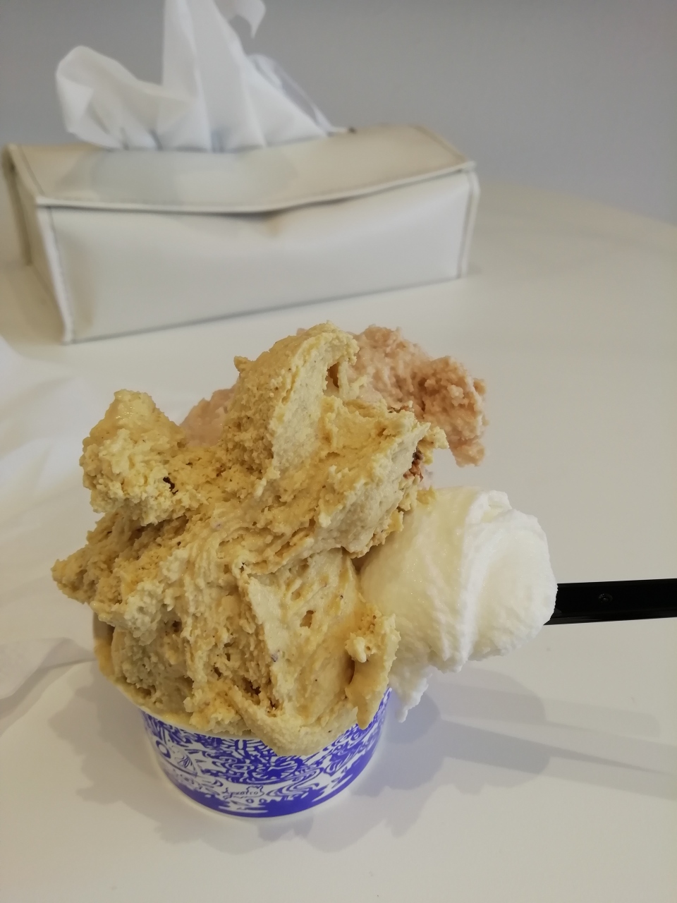 今回は、オレンジバニラマスカルポーネ(100円UP)とミルクをチョイス。 お試しでもう1つの味をワンスプーン選ぶことが出来るので、賞を受賞したグランピスタチオをチョイス。 どれも美味しいのですが、賞を受賞した100円UPのフレイバーはちょっと突拍子もない組み合わせが多かったりするので(でも、確実にこのお店でしか食べることが出来ない貴重な味ではありますが)、何気に通常の味の方がジェラートらしくて美味しいかも!と個人的には思います。