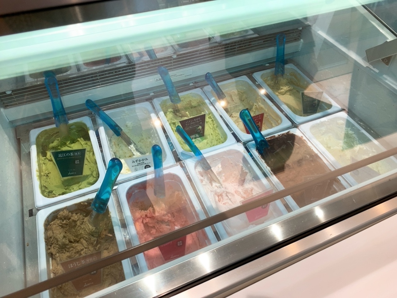 ジェラートは常時10種類くらいの味があり、地元滋賀の原料を使って作った味も楽しむ事が出来ます。 大会で賞を受賞したフレイバーは100円UPなので、ダブルやトリプルのジェラートを注文して、どちらも賞を受賞した味を選ぶと結構高くなると思います。