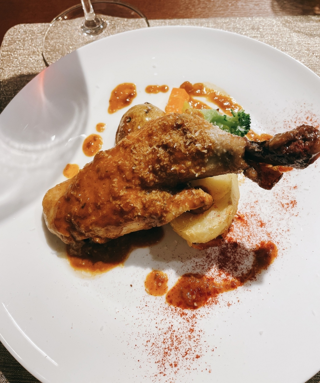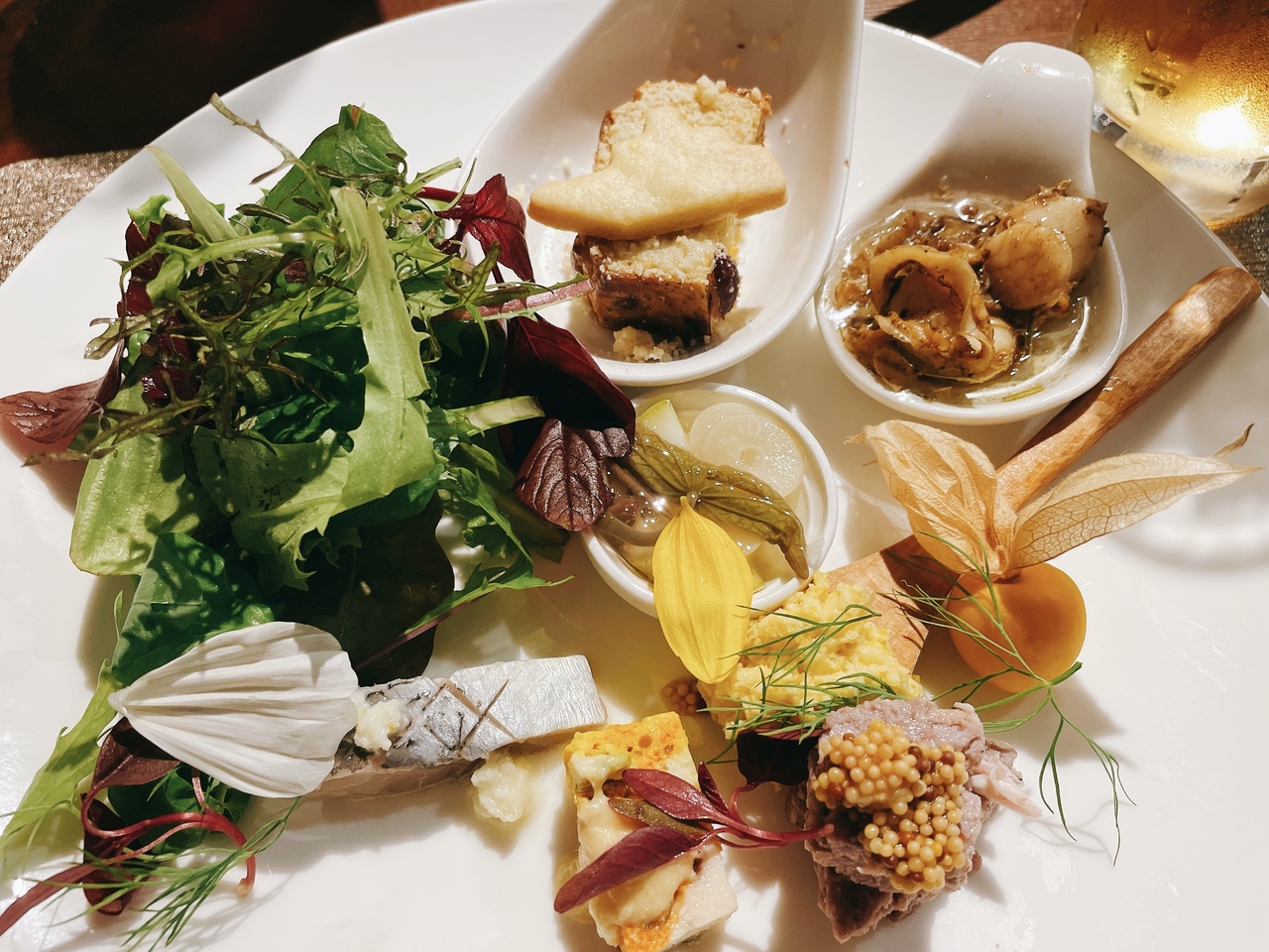 秋らしいオードブルの旨みたっぷりの鰊やほんのり甘いコーン、淡いピンク色のりんごのドレッシングが美味しかったです。
