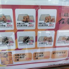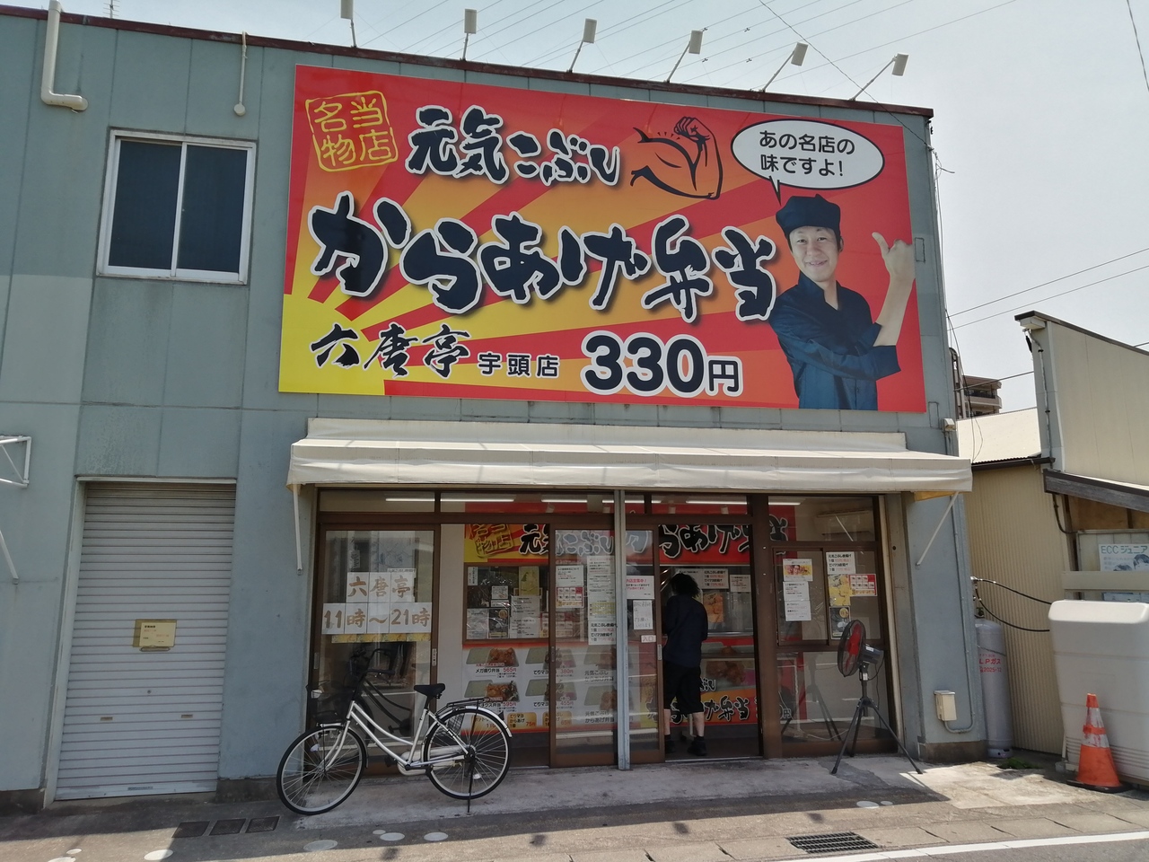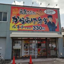 名鉄宇頭駅前にある、からあげ弁当屋です。周りに目ぼしい飲食店がないので存在感がありますが、それにもまして派手な看板が目立ち... 続きを読むます。「からあげ弁当330円」という文字に惹かれて立ち寄ってみました。もちろん看板にある「元気こぶしからあげ弁当(税込330円)」をオーダー。