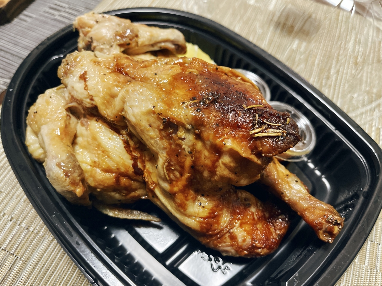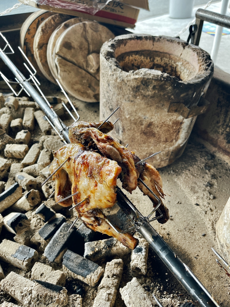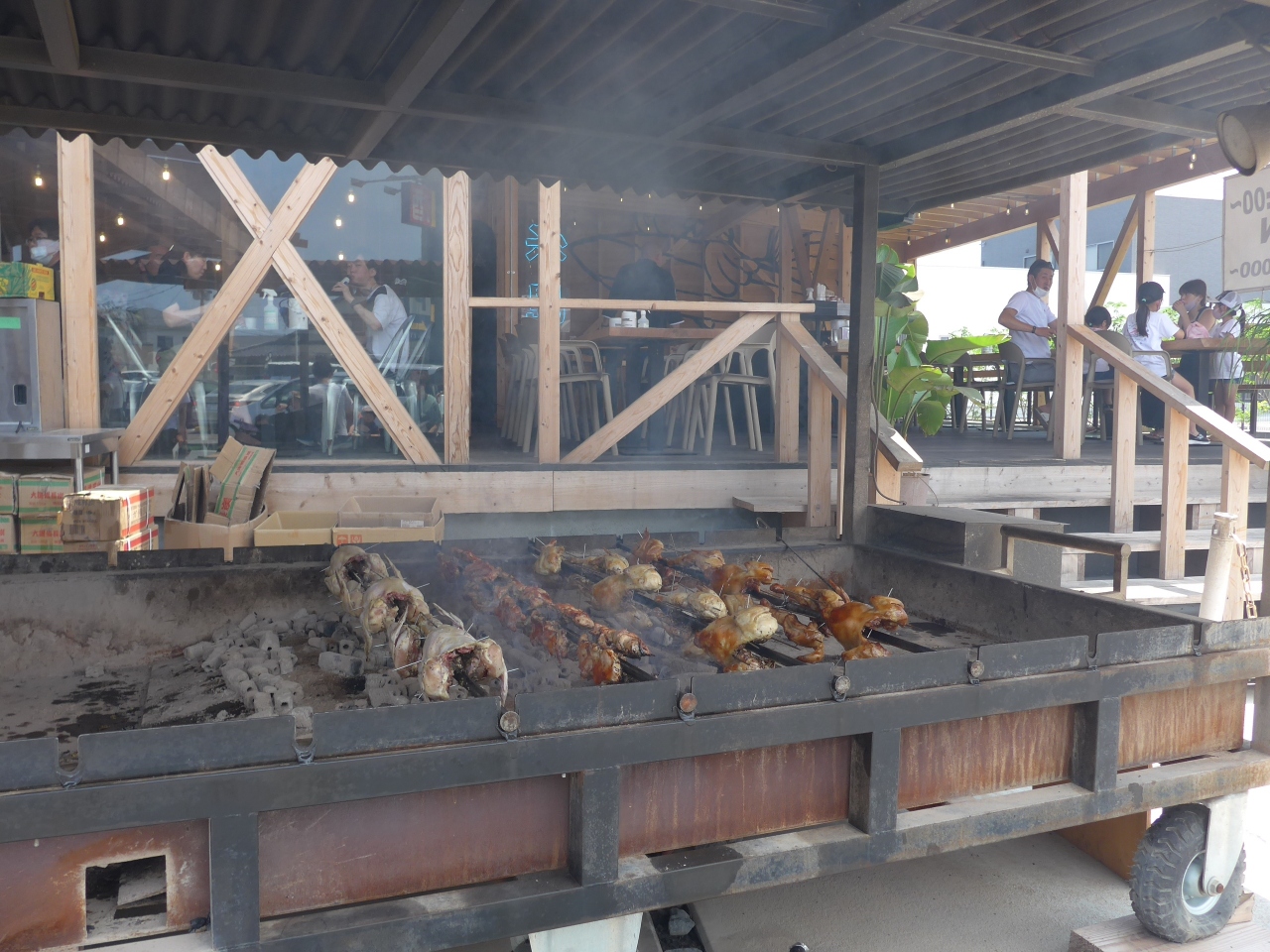 訪れた当日はお店の前に大きな箱型の調理器具が置かれ沢山の鶏肉が丸ごと焼かれていました。店内席はオープンスペースのテーブル席と店内奥にも店内席がありましたがテイクアウトのお客様が多くて十分に間隔をとって食すことができました。