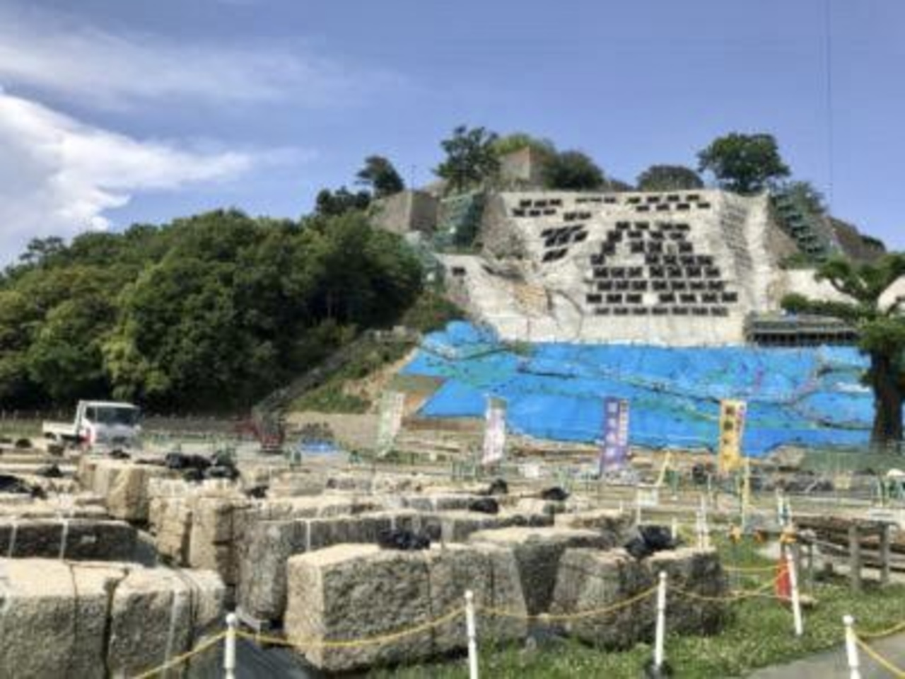 丸亀城特有の崩壊した高い石垣の災害復旧の最新技術を学べる丸亀城石垣復旧PR館