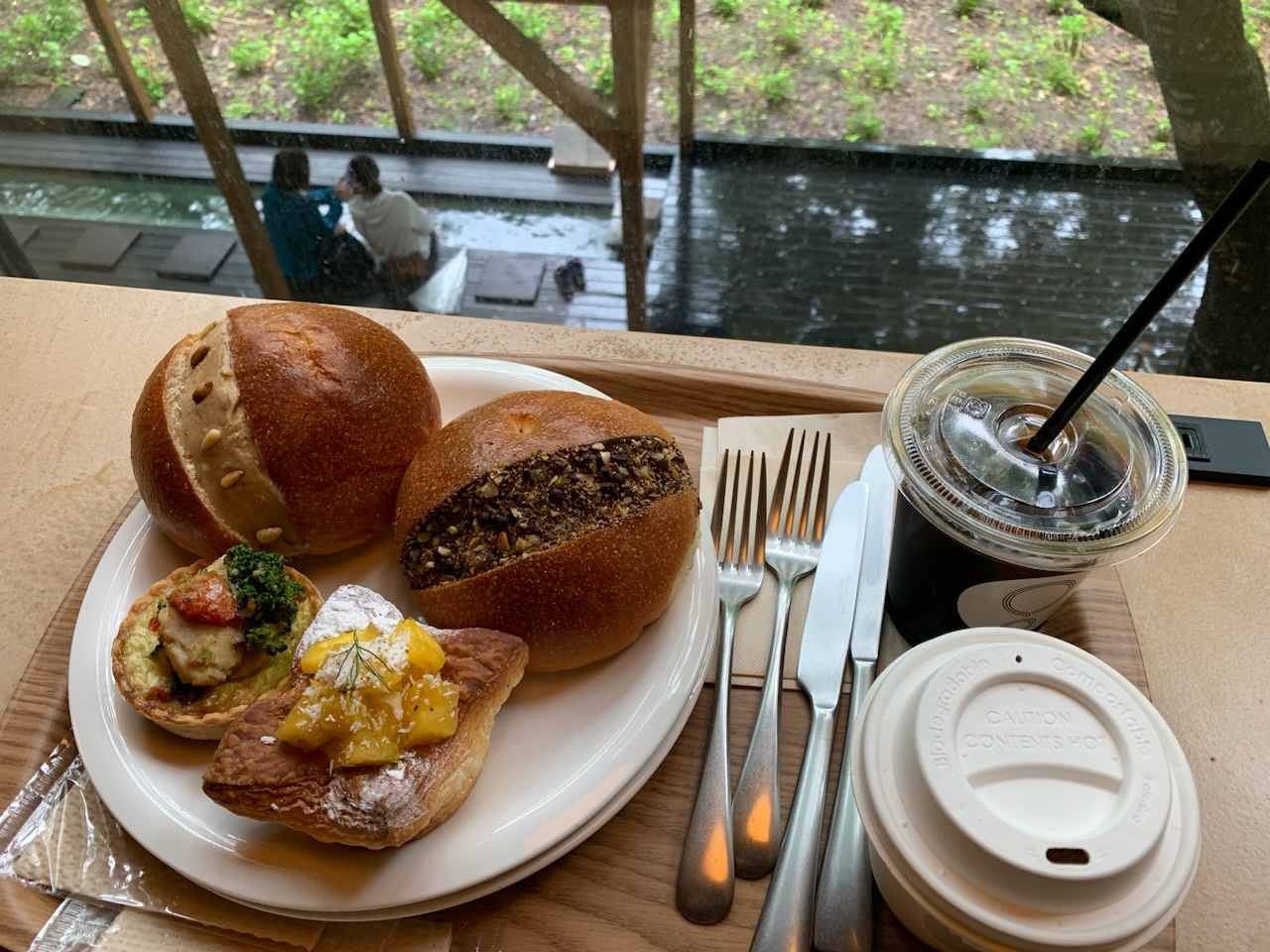 お店の前には足湯があり買ったパンを食べながら足湯ができる