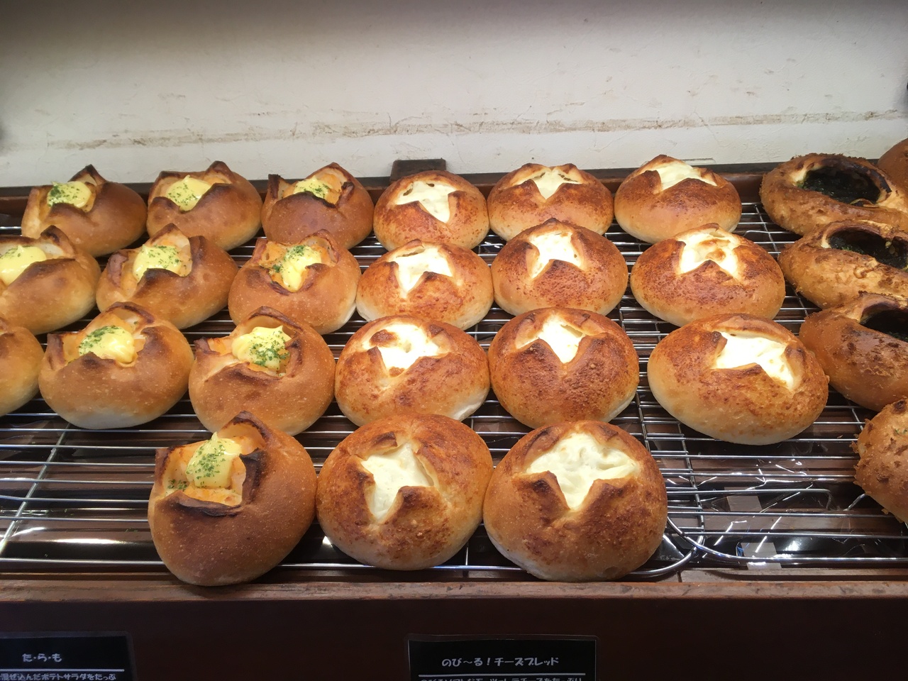 時間がお昼頃でしたので大半が売り切れていたようで、もしオープン時に伺えば色々な種類のパンが所狭しと並んでいたのでしょうね?~、パンが無いプライスカードだけが目につきました。