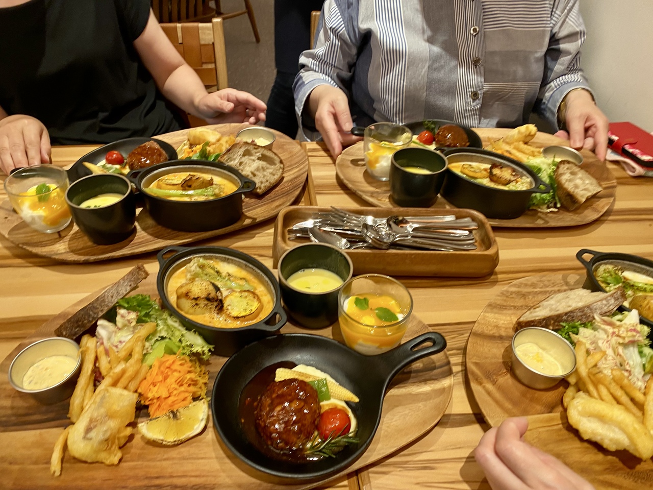 ハンバーグ、ドリア、フィッシュ&チップス、サラダ、スープ、デザートなど