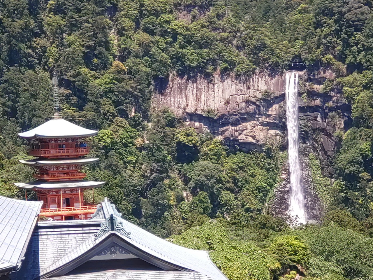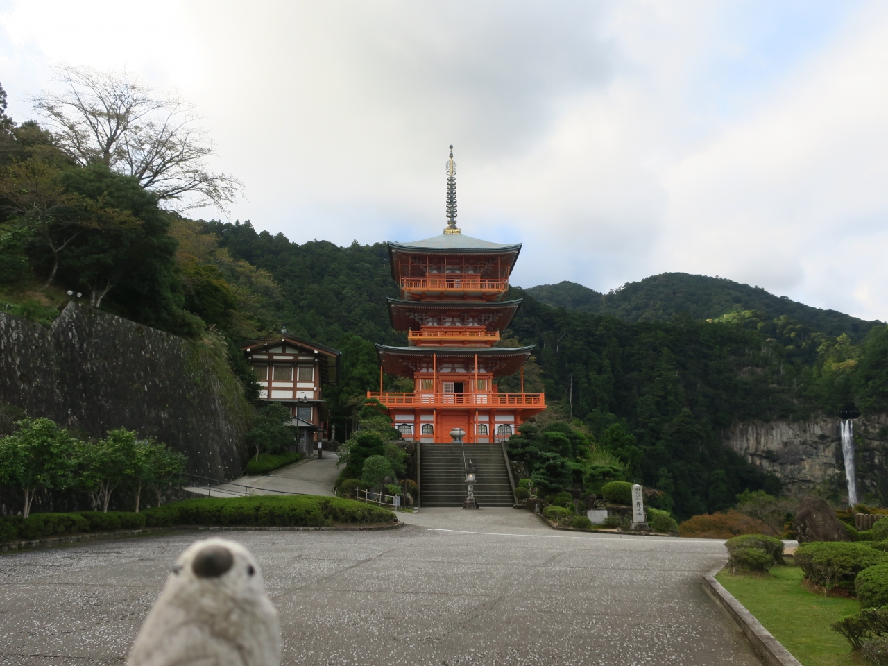 本堂近くから三重塔と那智の滝を一望できますが、この景色には感動しました。その後三重塔の前まで行ったら「那智の滝の滝壺まで見... 続きを読むえます」と書いてあったので拝観料を払って入ってみることにしました。エレベーターで3階まで登り、展望台から那智の滝を見ましたが、確かに滝壺は見えましたがちょっと遠かったです。滝壺を見るのならその後に行った飛瀧神社の方が間近に見れて良かったかな。
