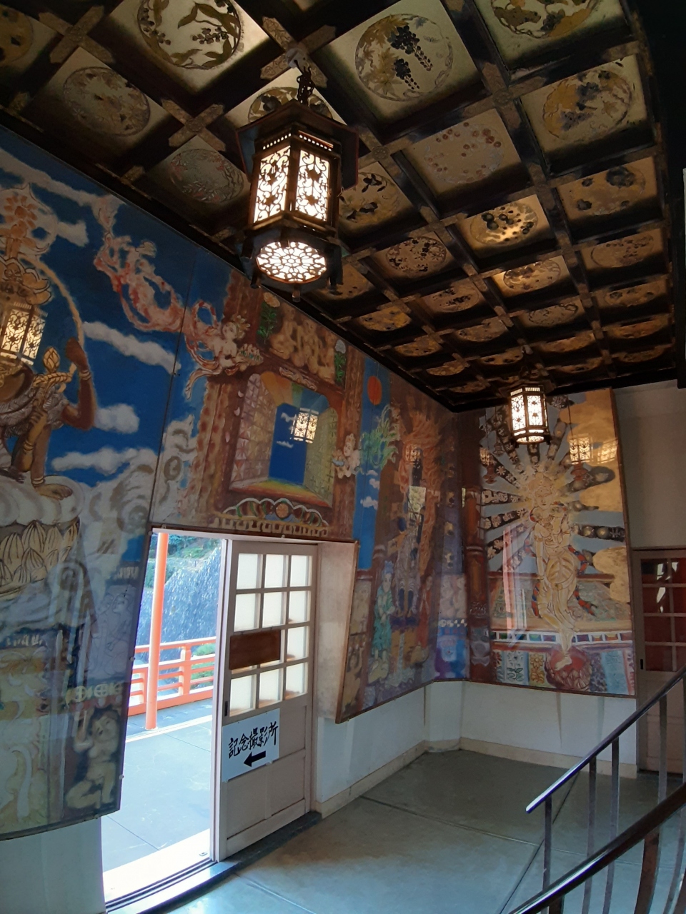降りるときは階段で、と書いてある表示を見落としてエレベーターで降りると、スタッフの人に二階は見ましたか?見てないなら見た方が良いです、と言われたので見に行ってみると見事な壁画がありました。