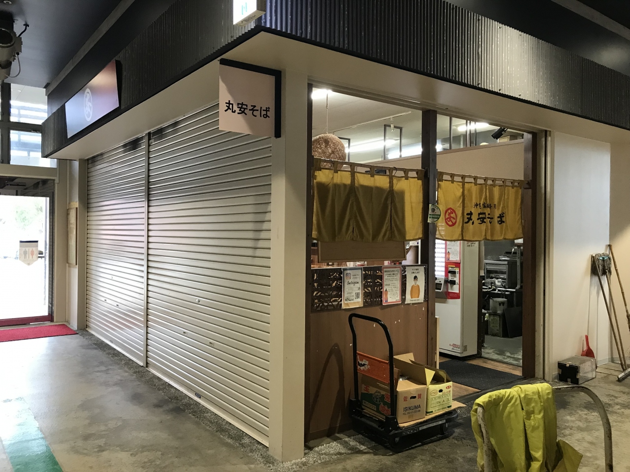 土曜日の17時前頃はほとんどの店はシャッターが下りていて、1Fで営業していたのは「丸吉せんべい」と「丸安そば」と数カ店、2Fで営業していたのは「たい焼きの三味堂」と「美崎牛」だけでした。