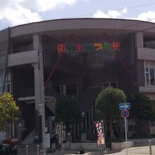 国際通りから行く場合は、市場中央通り、新天地市場通り、太平通りの順に進むと目の前に「のうれんプラザ」が見えました。