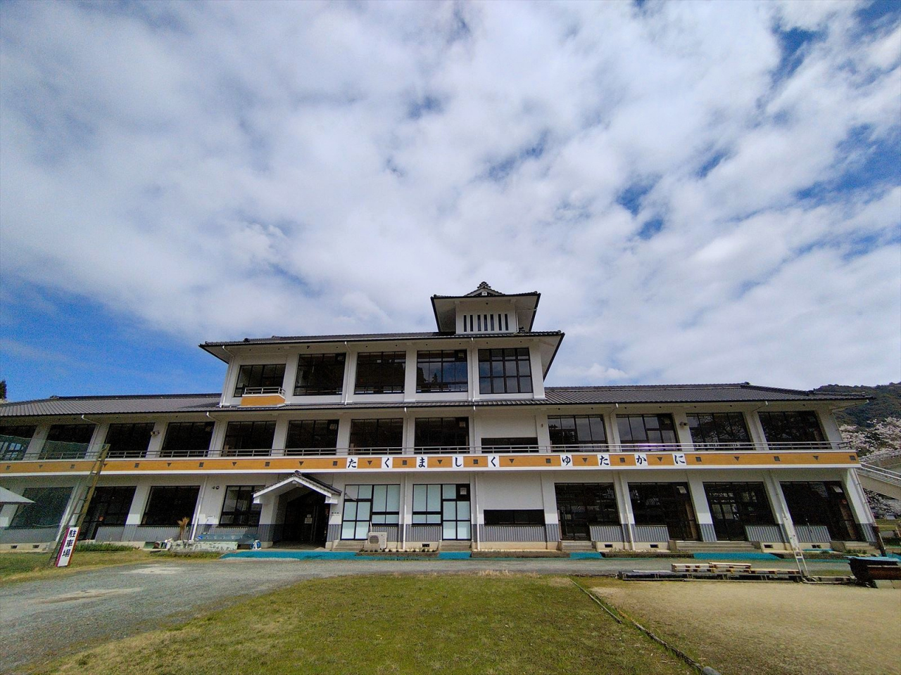 ミニミュージアムが入っている建物は、廃校となった春富小学校。お城を彷彿とさせるような立派な建物。駐車場は入口のすぐ前にあり、トイレもきれいにリノベーションされていました。