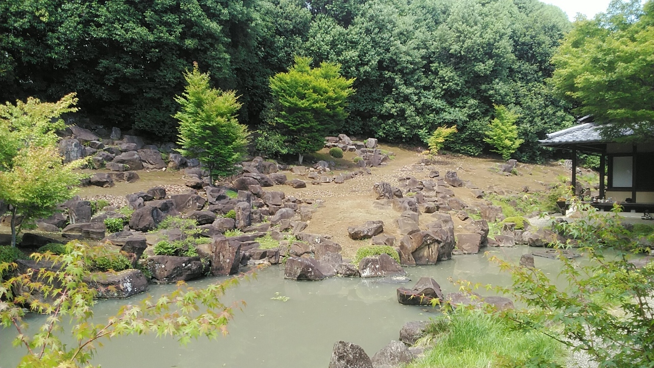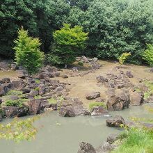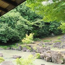 裏山を借景に石組みの綺麗な山梨県の名勝庭園