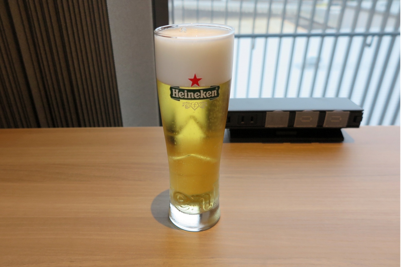 無料のアルコールは生ビールサーバーのハイネケンとキリン「一番搾り」、