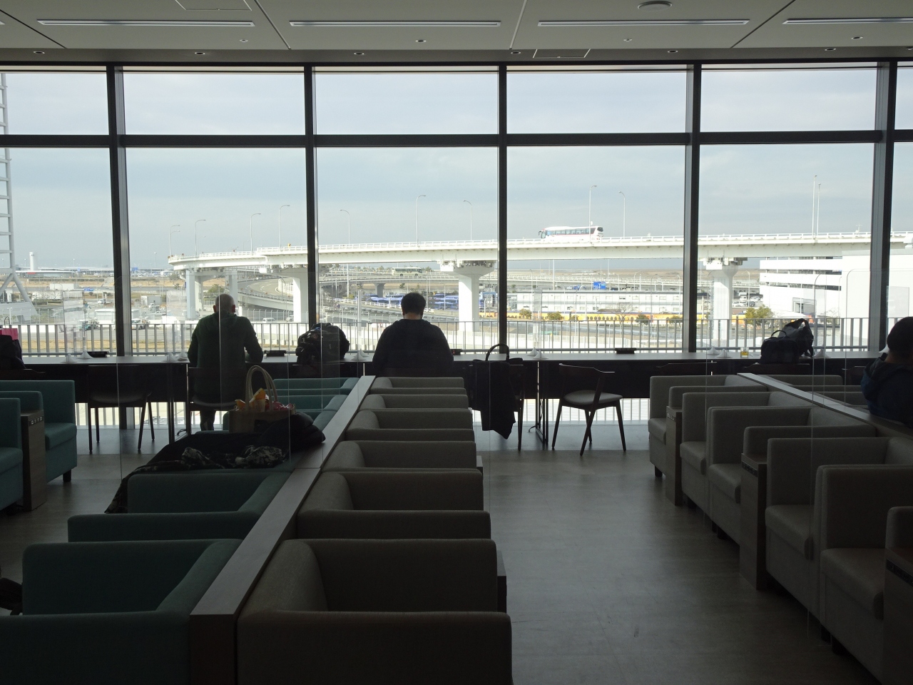前のANAのラウンジは外が見えなかったので、ここは外が見えて開放的な雰囲気です。