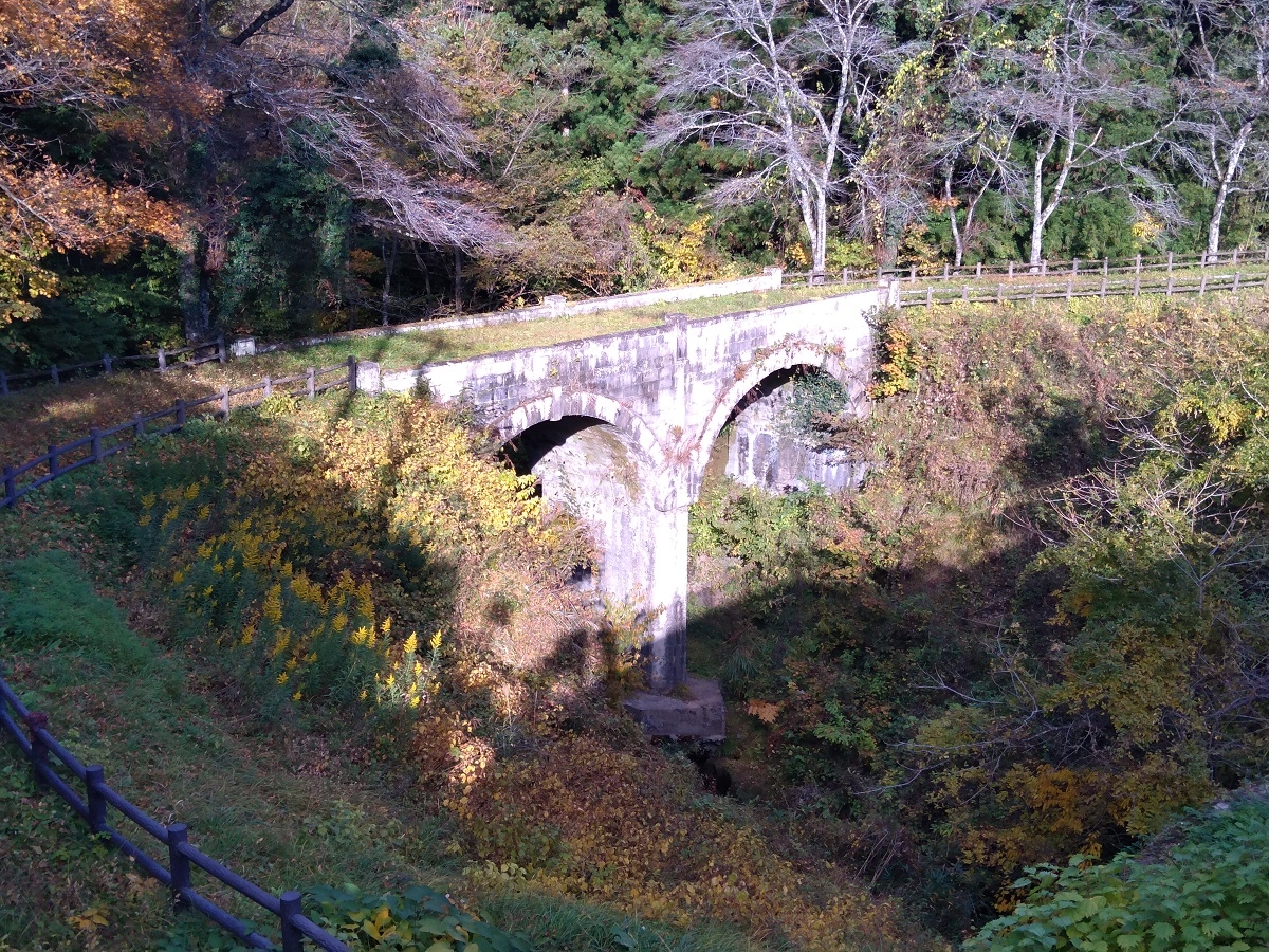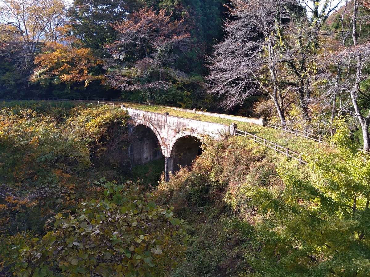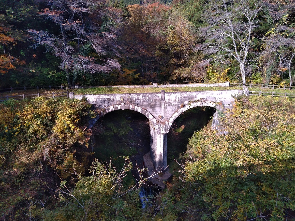 仙台市内の秋保温泉から秋保大滝へ向かう宮城県道62号を走っていくと右手に廃道が見えてくる。その廃道には橋が架かっており、そ... 続きを読むの橋の美しさに一瞬目を奪われてしまった。その橋は昭和14年に架けられた石造りの橋梁で「めがね橋」とも言われている。その橋梁へのアプローチする道もきれいに残っており、廃道ファンとして絶景を楽しめた。 閉じる