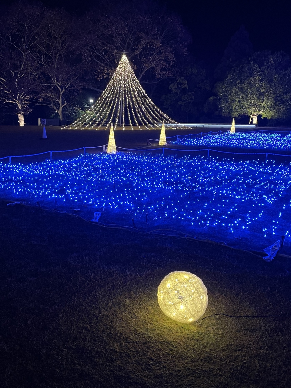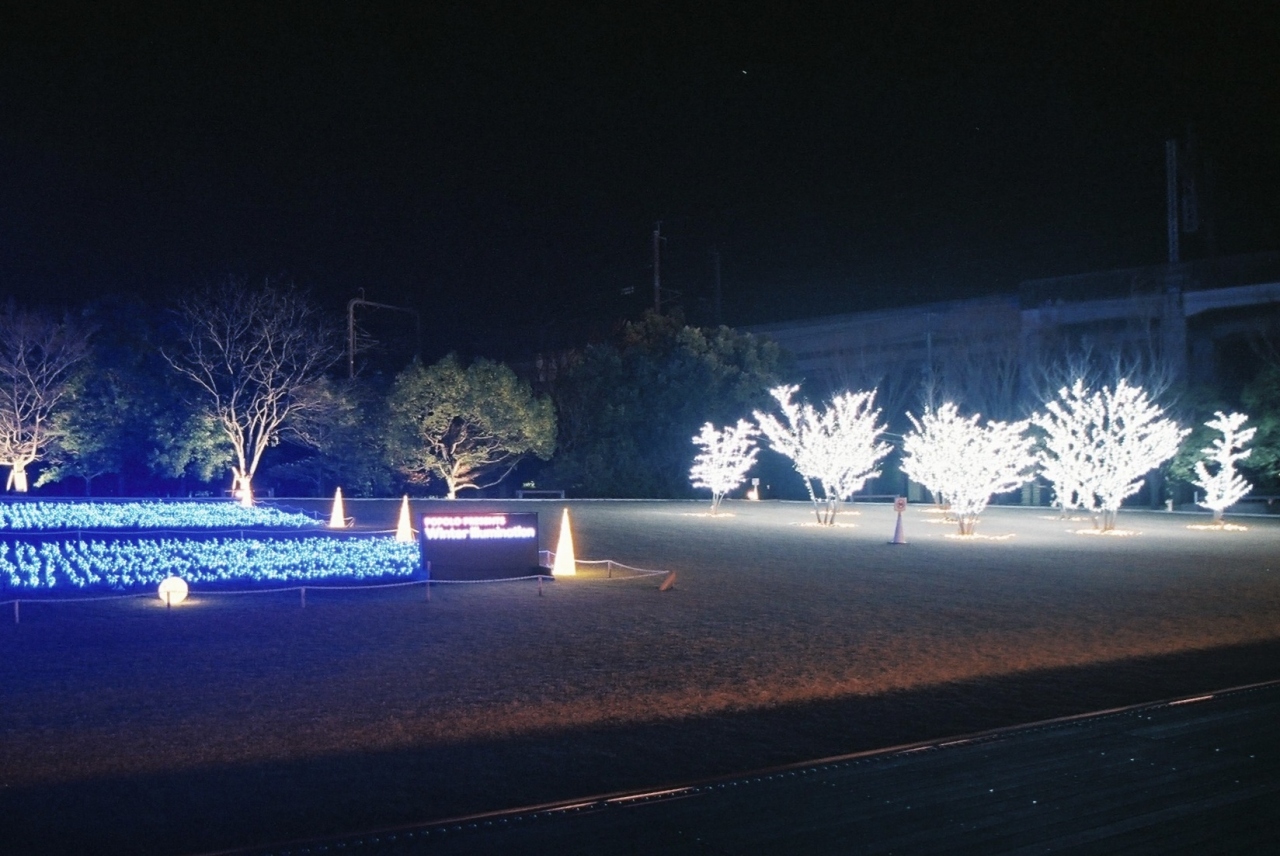 敷地隣には新幹線の高架があり、良くこのような場所でそこそこ大きいイルミネーションイベントが開けるものだとまずは感心した。しかし平日にも関わらず地元の方々が来訪が多く、観光客向けというよりは〝地元密着型〟の要素が強いと思えるイベントであった。