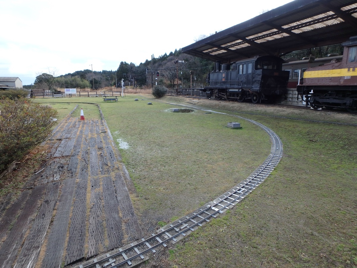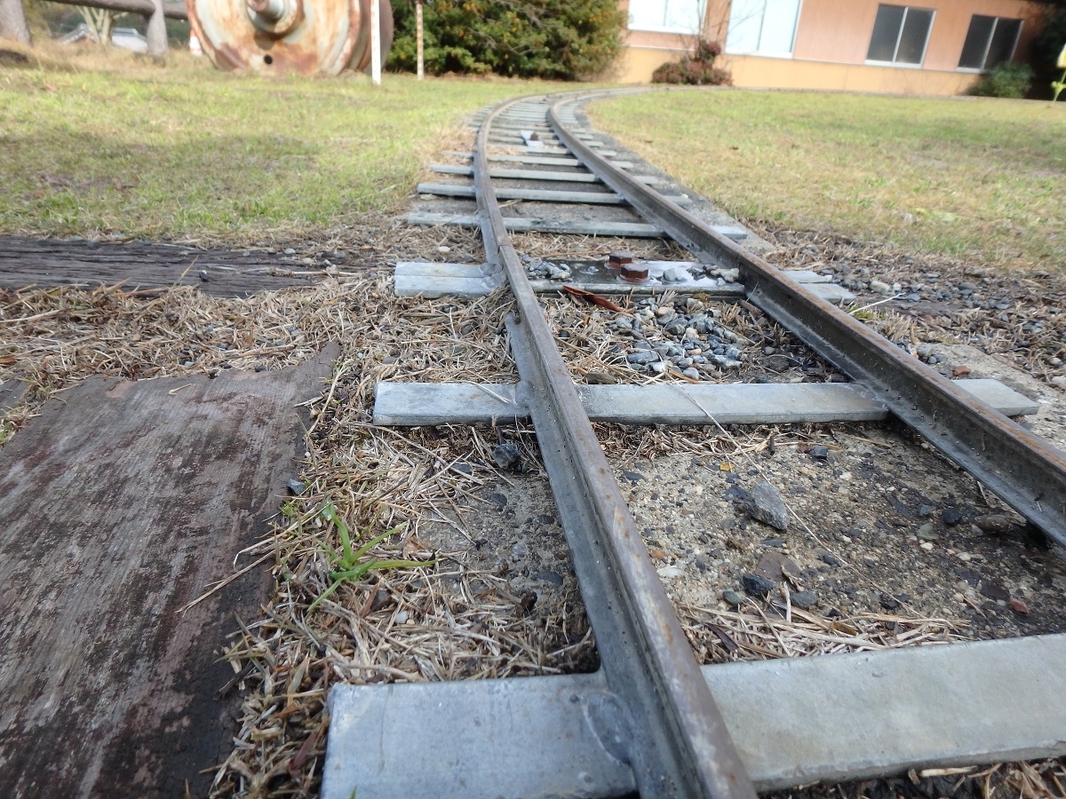 保存車両の下にはミニ鉄道のレールが敷かれている