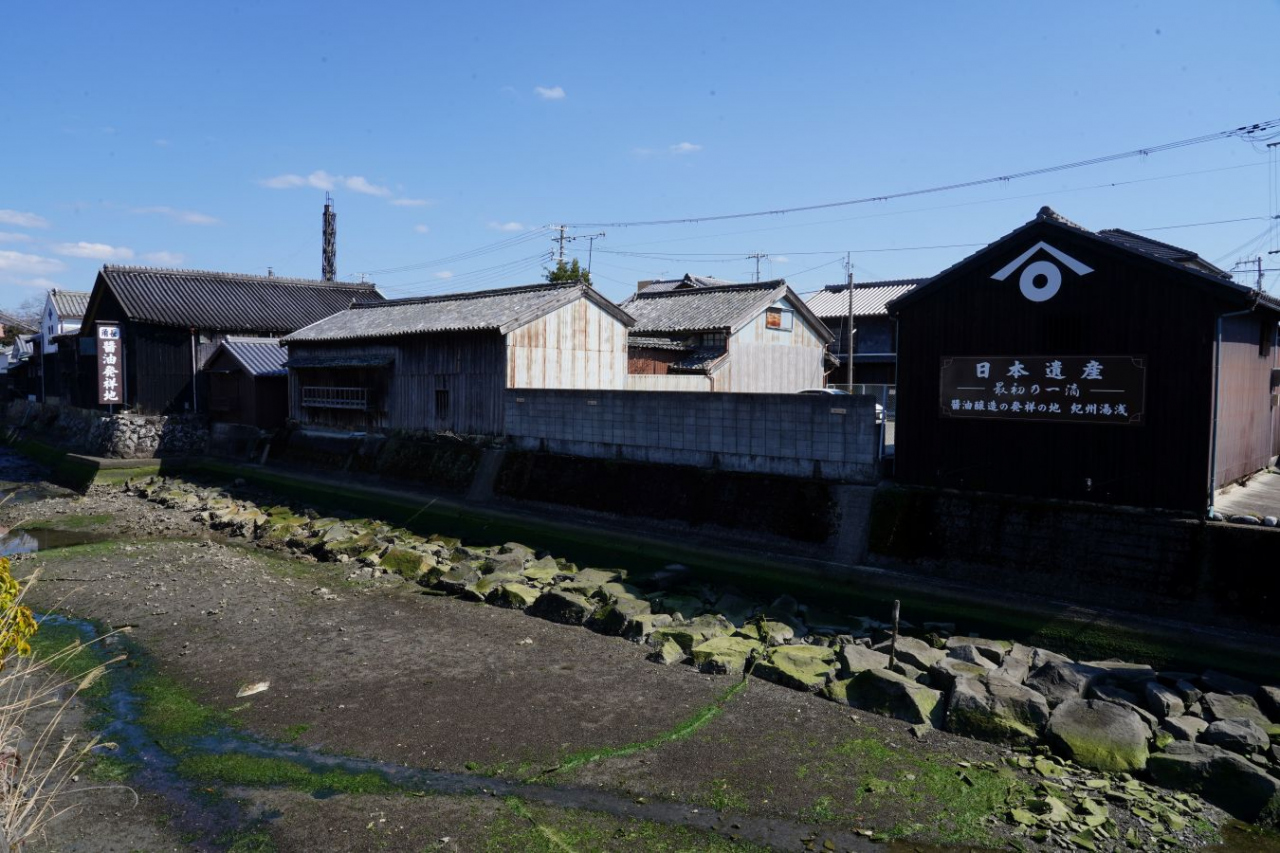 湯浅の重伝建地区の北側を流れる山田川に面して設けられた掘割です。対岸には醤油蔵が立ち並び、かつては醤油の積み出しや原料の搬... 続きを読む入などに使われたそうです。物流が船から鉄道に変わった際には、掘割まで鉄道が敷かれていたそうですが、その痕跡は残っていませんでした。現在は、トラック輸送となったため、掘割も使われていませんが、貴重な歴史の遺産として残されています。なお、重伝建側からは観ることは出系ません。 閉じる