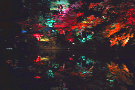 池にライトアップされた木々が映っているのです。