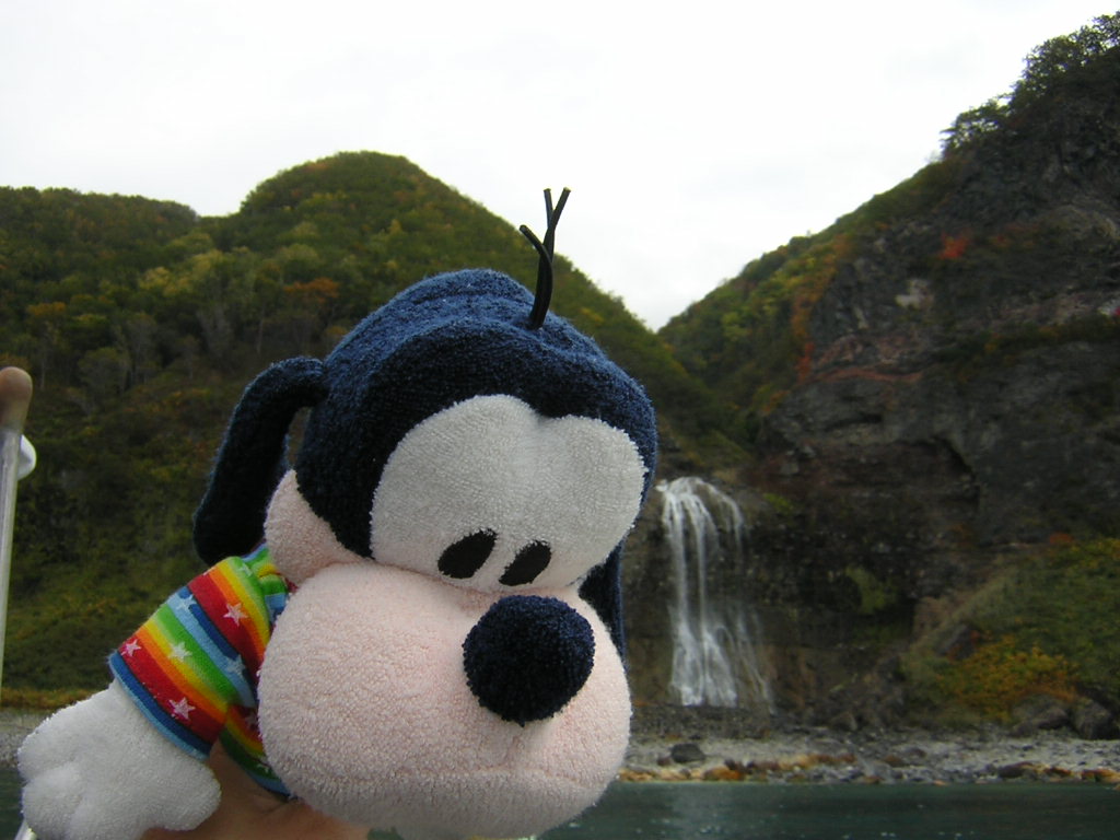 カムイワッカの滝は、なんと天然温泉が流れる本当の「かけ流し」なの。グーちゃんも海パンも持って準備してったんだけど時間がないのと寒いのとで断念したの。