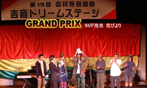 吉音コンテストでグランプリに輝くと、向こう1年間吉祥寺の街がアーティストの活動を全面的に支援、地元コミュニティー放送局で番組枠GET!au着うたサイト「レアうた」で楽曲配信やサッポロ缶ビール10ケース、JTB旅行券、ディズニーランドペアチケット、賞金5万円が用意されています。